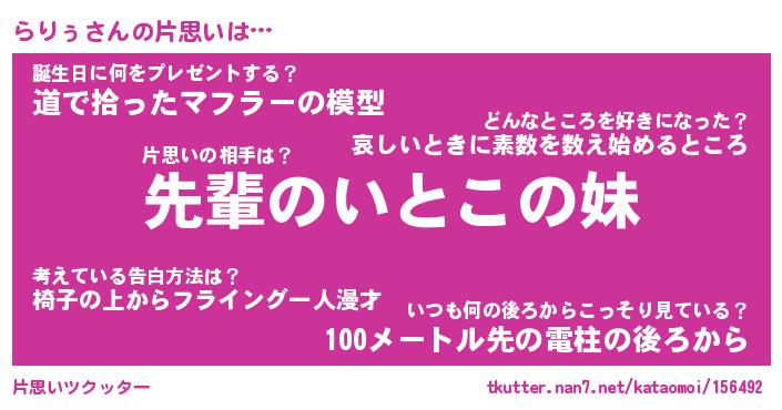 | 胡散臭い通販商品みたいなあだ名 | 『モテモテ間違いなし水晶球…その名も「らりぅ」』 |