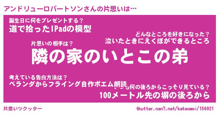 | ツイッター | アンドリューロバートソンさんのツイッターID『kikurage_kun』 |