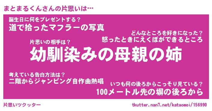 | ヘコむあだ名 | 『まとふぇ~』『つくし』『まとっ子』 |