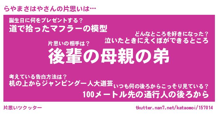 | ヘコむあだ名 | 『らやにー』『なまこ酢』『らやっ子』 |