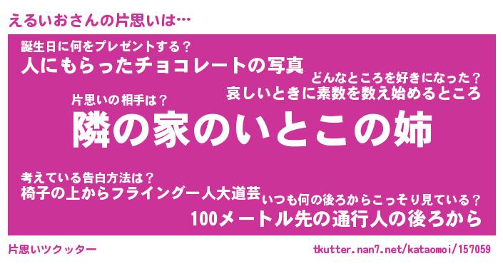| 意味不明あだ名 | 『ペロリンえるいお』『永久保存えるいお』 |