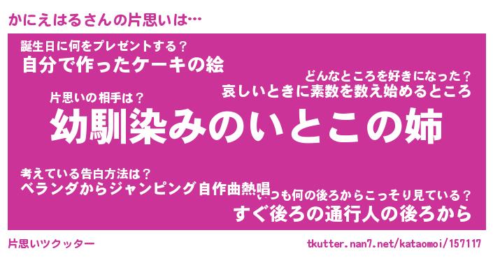 | 男性向けラノベタイトル風あだ名 | 『かにえはるの憂鬱』 |