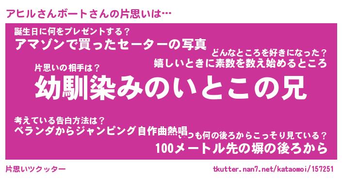 | ツイッター | アヒルさんボートさんのツイッターID『konnyaku_idle』 |