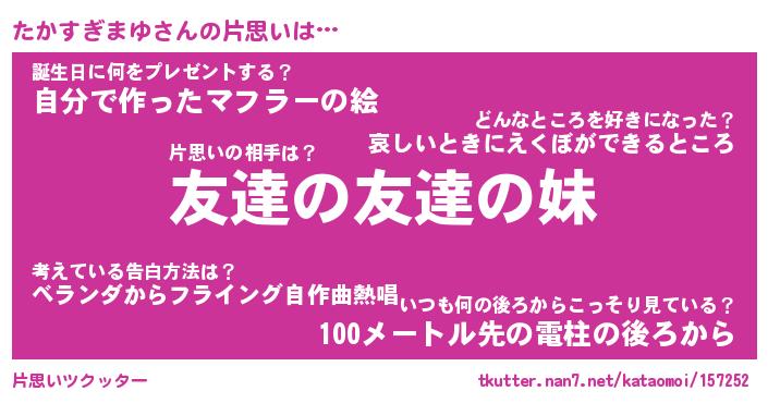 | 伝説のあだ名 | 『封印されしスナイパーたかすぎまゆ』 |