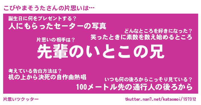 | 胡散臭い通販商品みたいなあだ名 | 『モテモテ間違いなし霊験あらたかなお札…その名も「こびやまそうた」』 |