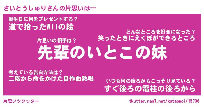 | 意味不明あだ名 | 『ペロリンさいとうしゅり』 |