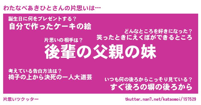 | ことわざ | 2階から目薬『わたなべあきひとから目薬』 |