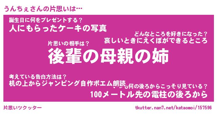 | ツイッター | うんちぇさんのツイッターID『dendenmushi_man』 |