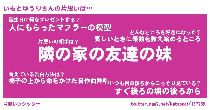 | 胡散臭い通販商品みたいなあだ名 | 『モテモテ間違いなし霊験あらたかなお札…その名も「いもとゆうり」』 |