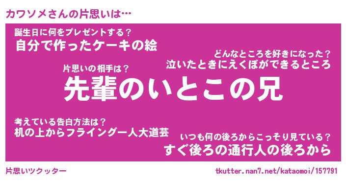 | 胡散臭い通販商品みたいなあだ名 | 『モテモテ間違いなし水晶球…その名も「カワソメ」』 |