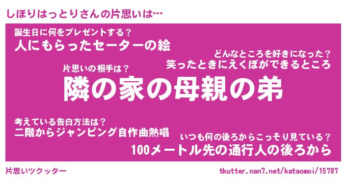 | 胡散臭い通販商品みたいなあだ名 | 『必ず成功するブレスレット…その名も「しほりはっとり」』 |