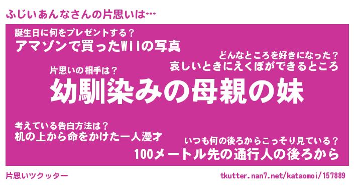 | ヘコむあだ名 | 『ふじにー』『なまこ酢』『ふじっ子』 |
