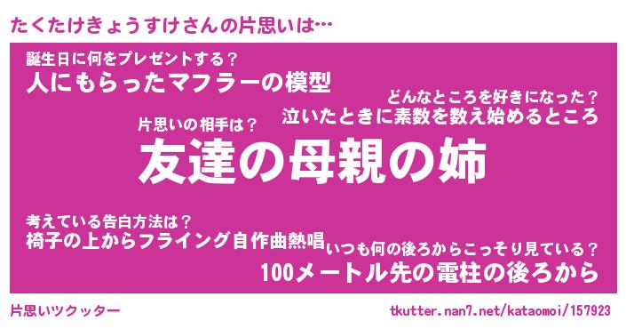 | 胡散臭い通販商品みたいなあだ名 | 『億万長者になれるブレスレット…その名も「たくたけきょうすけ」』 |