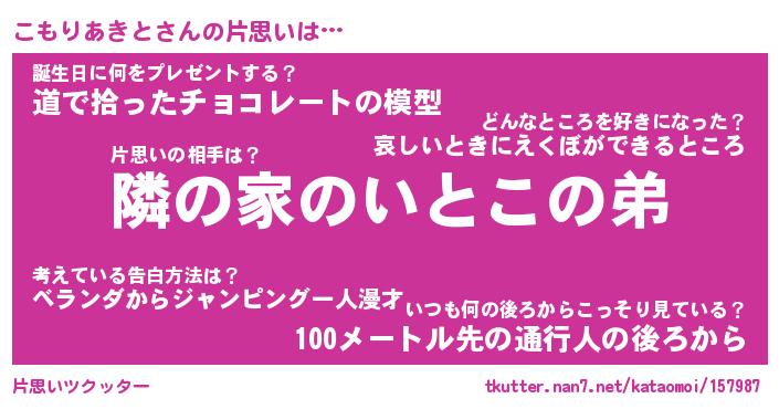 | 胡散臭い通販商品みたいなあだ名 | 『必ず成功する水晶球…その名も「こもりあきと」』 |