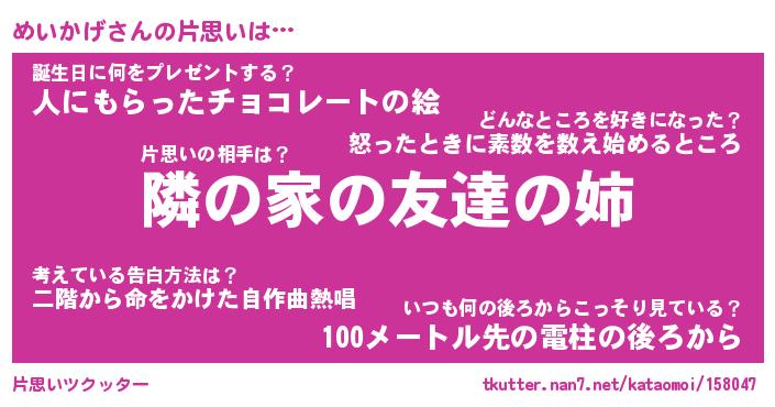 | 胡散臭い通販商品みたいなあだ名 | 『必ず成功する霊験あらたかなお札…その名も「めいかげ」』 |