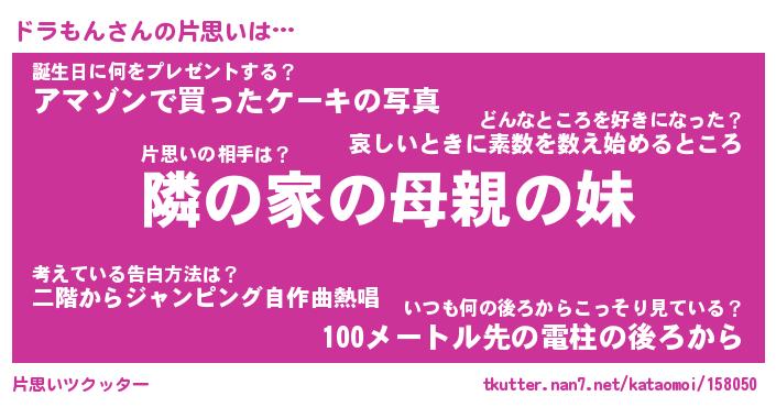 | 意味不明あだ名 | 『ペロリンドラもん』『永久保存ドラもん』 |