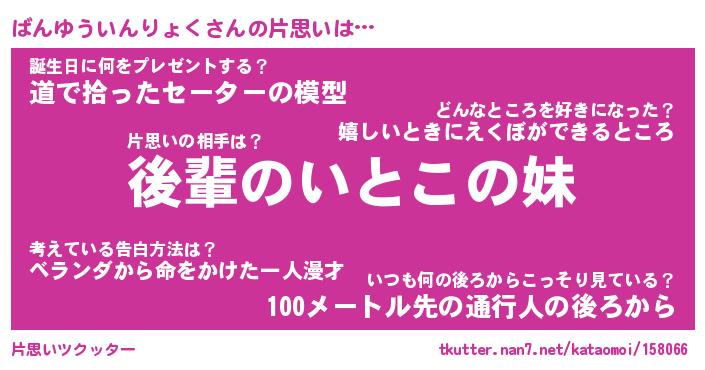 | ツイッター | ばんゆういんりょくさんのツイッターID『dendenmushi_kun』 |