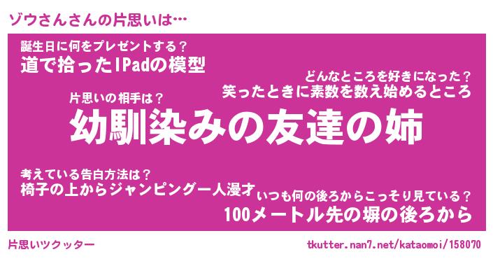 | 胡散臭い通販商品みたいなあだ名 | 『必ず成功する霊験あらたかなお札…その名も「ゾウさん」』 |