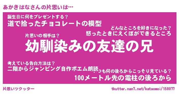 | ヘコむあだ名 | 『あかもー』『豆乳』『あかぷりん』 |