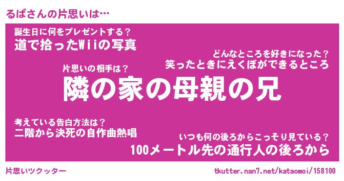 | 男性向けラノベタイトル風あだ名 | 『るばの憂鬱』 |