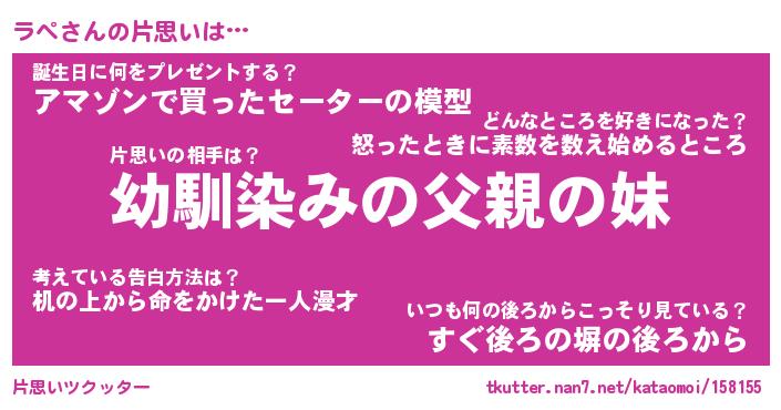 | ファンタジー風あだ名 | 『ラペフェル』『エターナルラペー』 |