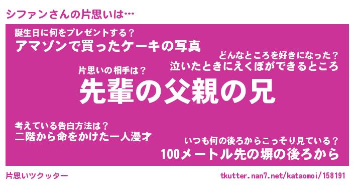 | 胡散臭い通販商品みたいなあだ名 | 『モテモテ間違いなし水晶球…その名も「シファン」』 |