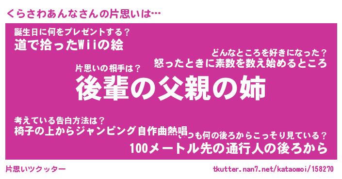 | 胡散臭い通販商品みたいなあだ名 | 『億万長者になれる水晶球…その名も「くらさわあんな」』 |