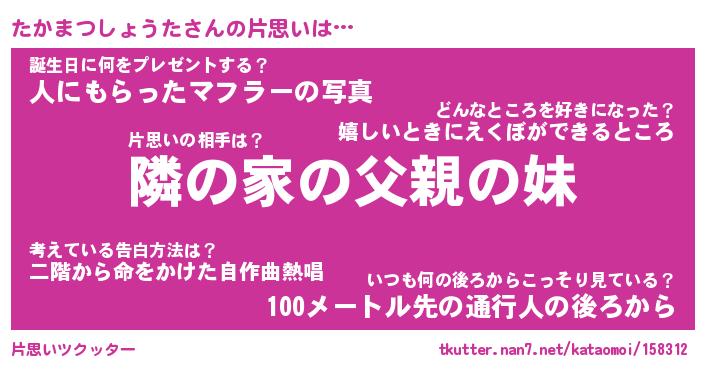 | 男性向けラノベタイトル風あだ名 | 『たかまつしょうたの憂鬱』 |