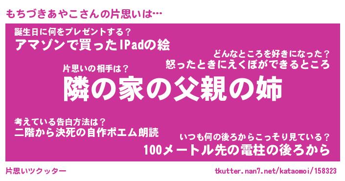 | 男性向けラノベタイトル風あだ名 | 『もちづきあやこの憂鬱』 |