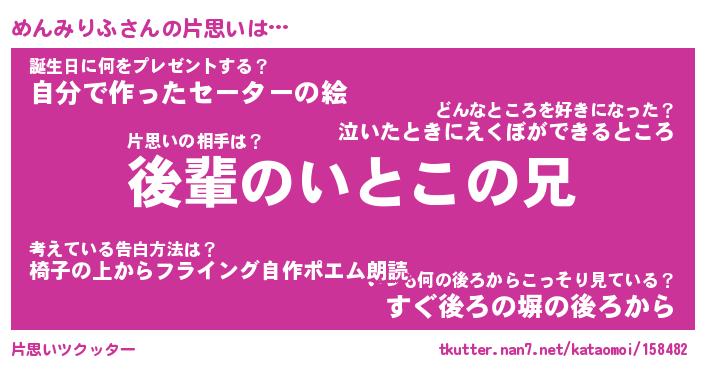 | ヘコむあだ名 | 『めんにゅー』『牛乳』『めんぷりん』 |