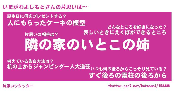 | 男性向けラノベタイトル風あだ名 | 『いまがわよしもとの憂鬱』 |