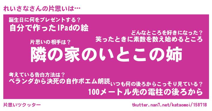 | 男性向けラノベタイトル風あだ名 | 『れいさなの憂鬱』 |