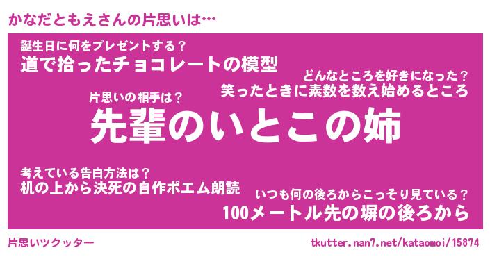| 胡散臭い通販商品みたいなあだ名 | 『モテモテ間違いなし水晶球…その名も「かなだともえ」』 |