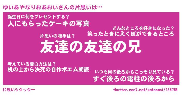 | 伝説のあだ名 | 『封印されしスナイパーゆいあやなりおあおい』 |