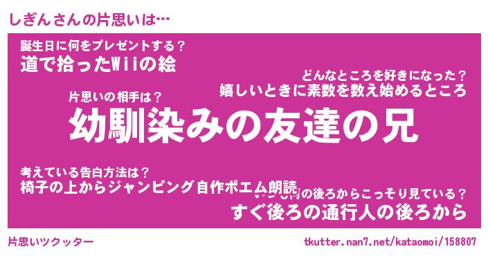 | ヘコむあだ名 | 『しぎもー』『豆乳』『しぎぷりん』 |
