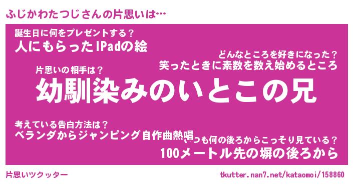 | 女子向けラノベタイトル風あだ名 | 『(仮)ふじかわたつじのやんごとなき事情』 |