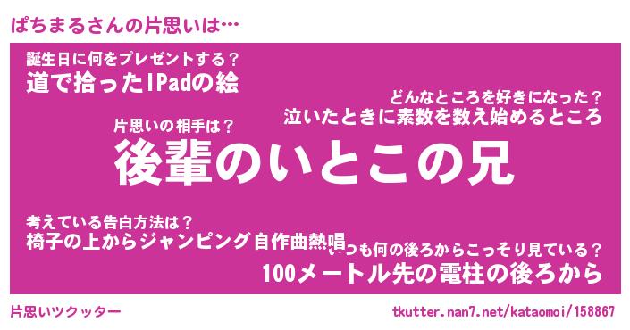 | 意味不明あだ名 | 『ペロリンぱちまる』『永久保存ぱちまる』 |