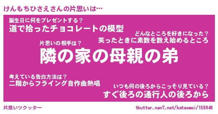 ポケモン風あだ名 | 『ケンチュウ』『ケンモダネ』 |