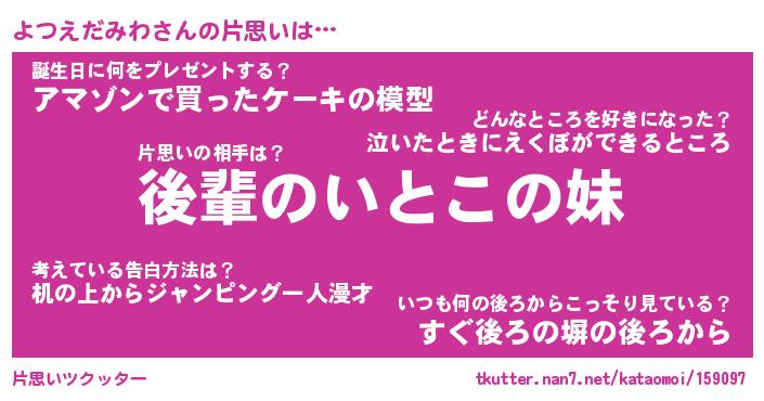 | ヒーロー風カッコイイあだ名 | 『スーパーヨツエダミワ』『天弓騎士ヨツ』 |