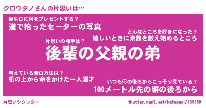 | 胡散臭い通販商品みたいなあだ名 | 『モテモテ間違いなし水晶球…その名も「クロウタノ」』 |