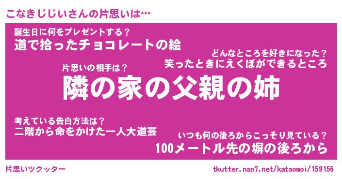 | 男性向けラノベタイトル風あだ名 | 『こなきじじいの憂鬱』 |