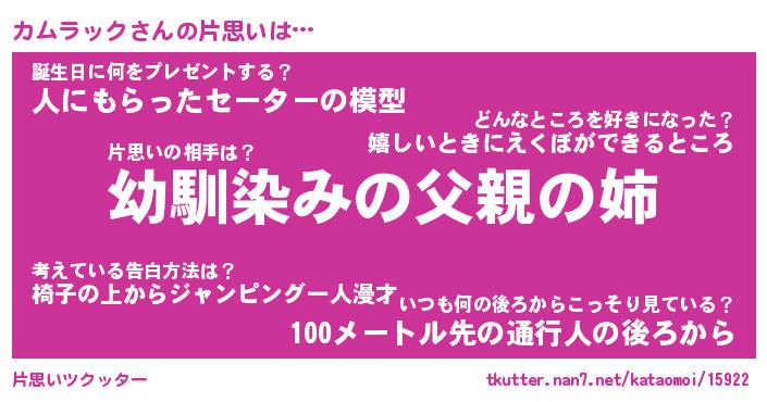 | ファンタジー風あだ名 | 『カムフェル』『エターナルカムラックー』 |