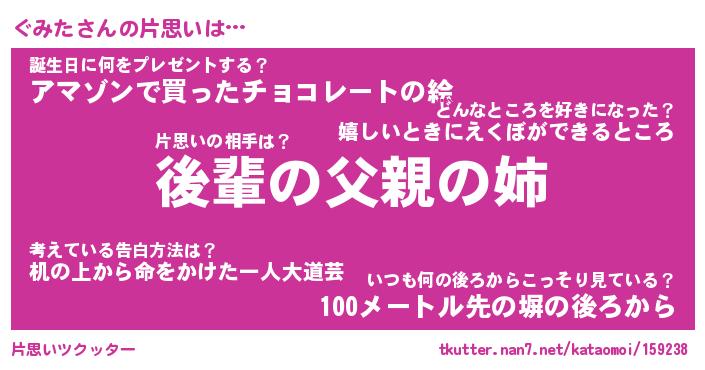 | ヘコむあだ名 | 『ぐみふぇ~』『なまこ酢』 |