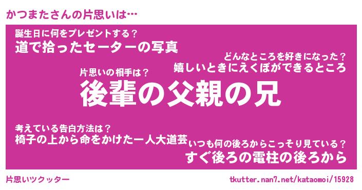 | ヒーロー風カッコイイあだ名 | 『スーパーカツマタ』『魔戒騎士カツ』 |