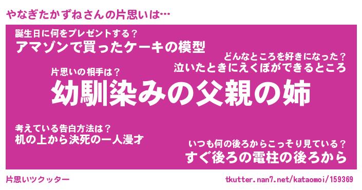 | 男性向けラノベタイトル風あだ名 | 『やなぎたかずねの憂鬱』 |