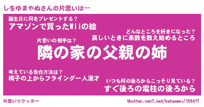 | 胡散臭い通販商品みたいなあだ名 | 『必ず成功するブレスレット…その名も「しをゆまやぬ」』 |