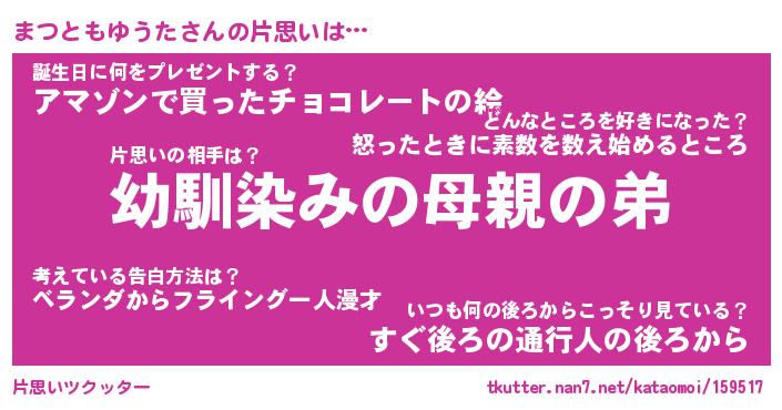 | 男性向けラノベタイトル風あだ名 | 『まつともゆうたの憂鬱』 |