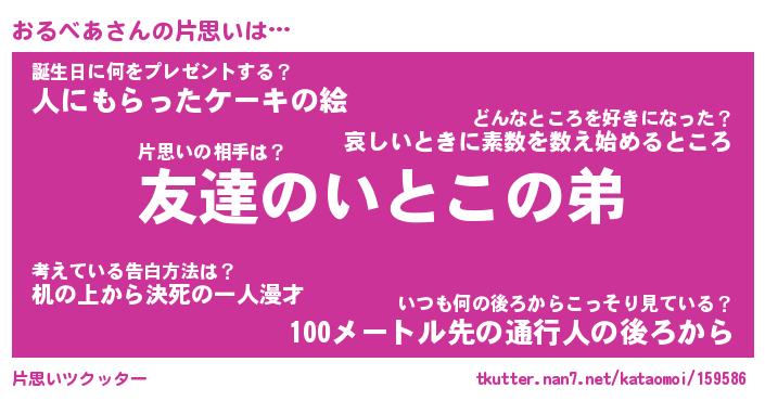 | 意味不明あだ名 | 『ペロリンおるべあ』『永久保存おるべあ』 |