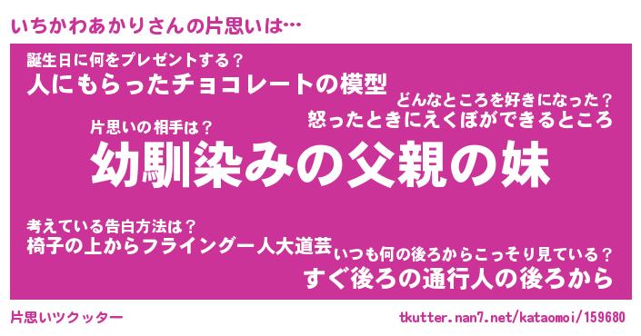 | 男性向けラノベタイトル風あだ名 | 『いちかわあかりの憂鬱』 |
