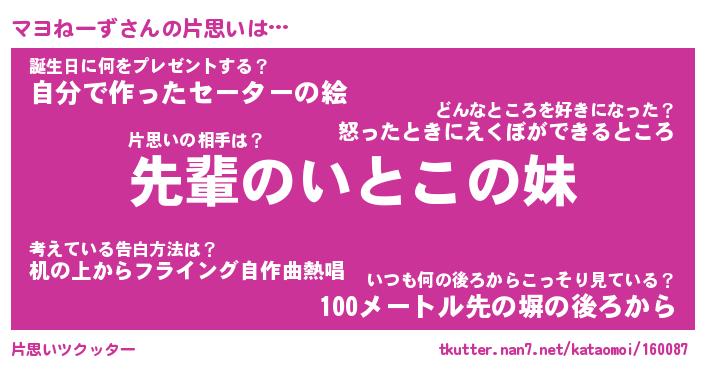 | ヘコむあだ名 | 『マヨにゅー』『牛乳』『マヨっぺ』 |